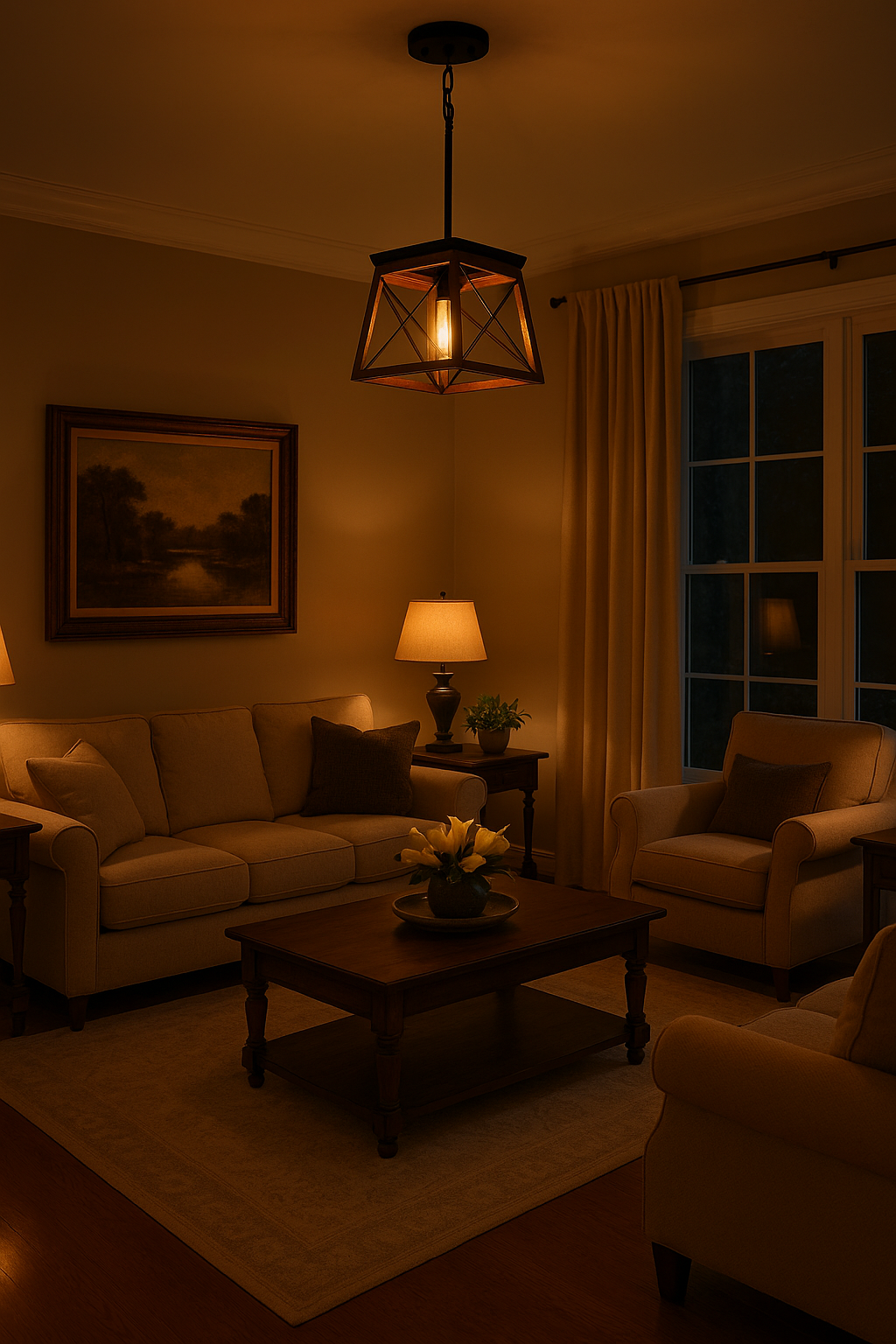 The adjustable hanging length (50–135 cm) allows you to customise the fit to your ceiling height, whether flat, sloped, or vaulted. Its open-air lantern design not only enhances the rustic look but also maximises the brightness of your chosen bulb.