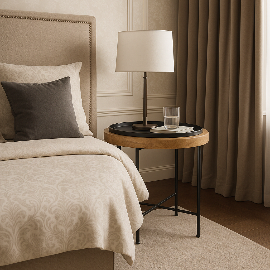 Rochester Wood & Metal Accent Table – Modern Round Mango Wood & Black Iron | LuxuryForLess.uk